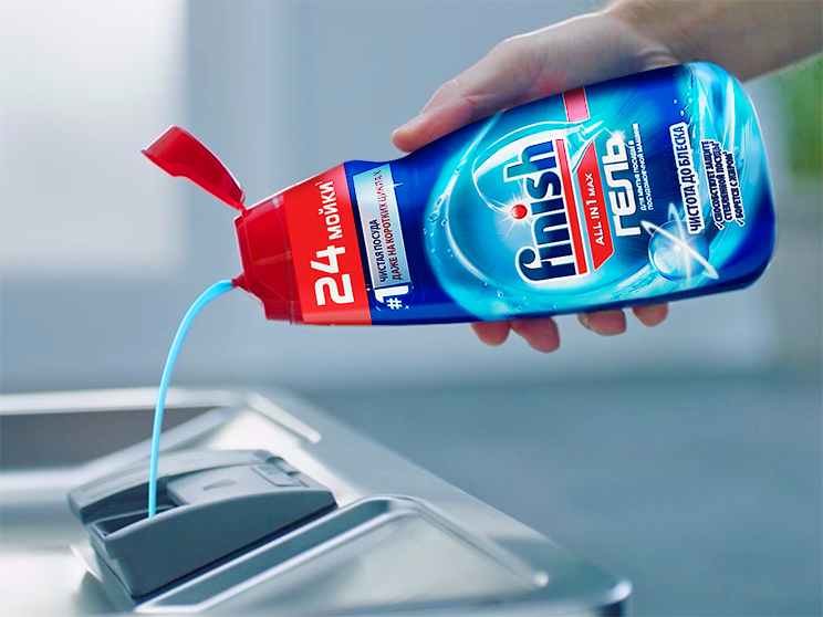 Новый формат средств для посудомоечной машины — гель Finish All in One с быстрорастворимой формулой обеспечивает ослепительный блеск и чистоту посуды даже на коротких циклах и при низкой температуре.