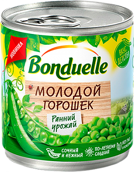 Молодой горошек – юный, нежный, сочный и свежий, как самое начало лето, когда горошек можно есть прямо с грядки. Bonduelle сохранил для вас магию лета! Мы специально отобрали особый сорт горошка, чтобы вы могли наслаждаться его восхитительным вкусом в любое время года. Молодой горошек настолько хорош, что даже не требует добавлений – он идеальное решение для перекуса. Не менее прекрасен и как холодный гарнир.