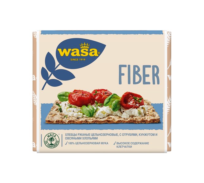 Хлебцы ржаные Wasa Fiber цельнозерновые с пшеничными отрубями, кунжутом и овсяными хлопьями 230 г