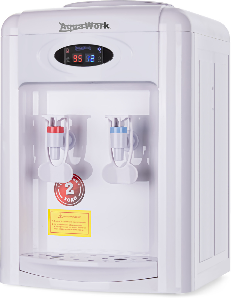 Настольный кулер Aqua Work 0.7-TDR-ST это практичное решение для тех, кто ценит функциональность, экономичность и стильный дизайн.Компактный размер, продвинутые технологии и режим энергосбережения делают этот аппарат прекрасным выбором для дома или офиса.Особенности Aqua Work 0.7-TDR-ST🔥 Мощный нагрев:Бак объемом 1 литр с нагревательным элементом мощностью 700 Вт.Способен выдать до 7 литров горячей воды в час с температурой 9798C.❄️ Электронное охлаждение:Обеспечивает до 1 литра прохладной воды в час с температурой на 1214C ниже комнатной.💡 Индикация температуры:Встроенные датчики показывают текущую температуру в горячем и холодном бачках, что делает контроль состояния максимально удобным.⚡ Энергоэффективность:Кнопка Эко позволяет переключить аппарат в режим энергосбережения: автонагрев отключается, а вода подогревается только при нажатии кнопки нагрева до температуры 9798C.🔧 Простое управление:Два удобных крана типа нажим кружкой обеспечивают легкий доступ к воде любой температуры. Кнопка принудительного включения нагрева гарантирует максимальную температуру получаемой воды.✨ Держатели стаканчиков:На корпусе из пластика можно закрепить стаканодержатели с помощью шурупов или двустороннего скотча!🌙 Ночная подсветка:Подсветка краников и зоны розлива делает использование аппарата комфортным даже в условиях недостаточной освещенности.Где будет уместен энергосберегающий кулер?🎯 Для домашних пользователей, которым нужен компактный и функциональный кулер без лишних затрат на электроэнергию.🎯 Для офисов, где важна экономия места и доступ к горячей и прохладной воде.🎯 Для мест с ограниченным пространством, где требуется надежное устройство для розлива воды.Почему стоит выбрать эту модель?✅ Быстрый нагрев:Мощность 700 Вт гарантирует получение достаточного количества горячей воды для приготовления любимых напитков.✅ Эффективное охлаждение:Электронная система охлаждения обеспечивает прохладную воду даже в жаркую погоду.✅ Экономичность:Режим Эко минимизирует потребление электроэнергии, делая использование более выгодным.✅ Контроль температуры:Индикация температуры воды в бачках помогает всегда быть в курсе её готовности.✅ Стильный дизайн:Компактные размеры и современный внешний вид делают аппарат прекрасным дополнением любого интерьера.Как работает устройство?1️⃣ Установите бутыль с водой сверху.2️⃣ Используйте соответствующие краны для набора горячей или прохладной воды.3️⃣ При необходимости активируйте режим Эко, чтобы снизить потребление электроэнергии.4️⃣ Для получения максимально горячей воды воспользуйтесь кнопкой принудительного включения нагрева.5️⃣ Наслаждайтесь подсветкой зоны розлива в вечернее время.Гарантия качества!Производится в России компанией Аква Маркет, которая контролирует каждый этап изготовления.Мы предоставляем 24-месячную гарантию при покупке на нашем сайте или в фирменных магазинах Аква Маркет.Ваше спокойствие и удовлетворение для нас важнее всего!⚠️ Важно: Перед первым использованием проверьте правильность установки бутыли и ознакомьтесь с инструкцией.Почему именно Aqua Work 0.7-TDR-ST?✅ Быстрый нагрев до температуры 9798C.✅ Электронное охлаждение с температурой 1214C ниже комнатной.✅ Индикация температуры.✅ Экономия электроэнергии.