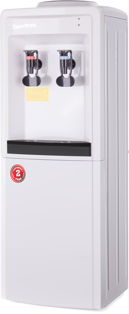 Миниатюрный кулер для воды Aqua Work 0.8-LR с нагревом и производительной компрессорной системой охлаждения питьевой воды из установленной сверху бутылки.Стальной белый корпус отлично сочетается с черными краниками, каплесборником и бутылеприемником;Мощность нагрева - 700 Вт, до 7 литров горячей воды за 1 час;Компрессор мощностью 90 Вт охлаждает за час не менее 2 литров;Стальной корпус высотой 85 см (это меньше привычной для диспенсеров высоты 96-100 см);Можно прикрепить со стаканодержатели любого типа;2 эргономичных краника типа нажим кружкой для горячей и холодной воды;Кулер Aqua Work 0.8-LR производится и собирается нами в России. Мы предоставляем 2 года гарантии про покупке этого аппарата на сайте или в магазинах Аква Маркет.