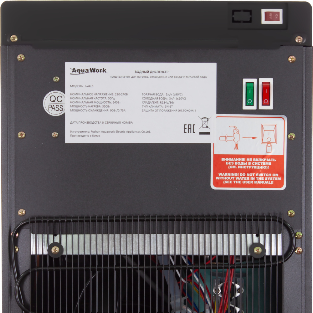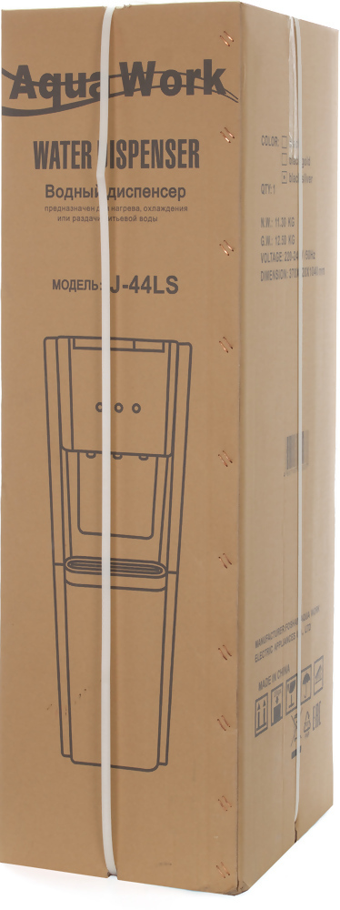 Ищете современный кулер, который быстро обеспечит Вас горячей, холодной или комнатной водой?Aqua Work 44-LS стильное решение с компрессорным охлаждением и мощным нагревом!Особенности Aqua Work 44-LS🌟 Мощный нагрев до 9094C за считанные минуты!С нагревательной системой мощностью 550 Вт Вы получаете не менее 5 литров горячей воды всего за час. Идеально для приготовления чая, кофе или быстрого перекуса.🌟 Эффективное компрессорное охлаждение!Компрессорная система позволяет охладить до 3 литров воды за час до температуры 510C. Теперь прохладная вода всегда под рукой, даже в самые жаркие дни.🌟 Удобное управление с тремя режимами!Три кнопки на передней панели позволяют легко выбирать между горячей, холодной или водой комнатной температуры. А светодиодные индикаторы помогают отслеживать работу устройства.🌟 Стильный дизайн из стали и пластика!Кулер выполнен в элегантном корпусе из высококачественной стали и пластика, который станет отличным дополнением любого интерьера.🌟 Безопасность и удобство в деталях!Гибкая силиконовая трубка для забора воды гарантирует надёжность и долговечность.Датчик опустошения бутылки предупредит вас, когда пора её заменить.Нагрев и охлаждение можно отключить тумблерами на задней стенке для экономии электроэнергии.🌟 Гибкость в аксессуарах!Вы можете установить стаканодержатели с помощью магнитного крепления или двустороннего скотча, чтобы сделать использование ещё удобнее.Для кого этот кулер?🎯 Для семей, которые ценят комфорт и удобство.🎯 Для офисов, где важна доступность горячей и холодной воды.🎯 Для мест с высокой проходимостью, где требуется быстрая работа устройства.Как работает Aqua Work 44-LS?1️⃣ Установите бутыль с водой снизу, опустив вниз гибкую силиконовую трубку.2️⃣ Используйте соответствующие краны для набора горячей или холодной воды.3️⃣ Отслеживайте работу аппарата по светодиодным индикаторам.4️⃣ При необходимости отключите нагрев или охлаждение с помощью тумблеров на задней стенке.Гарантия качества!Как и на все другие кулеры Aqua Work, мы предоставляем 2 года гарантии при покупке модели 44-LS на нашем сайте или в магазинах Аква Маркет.Ваше спокойствие и удовлетворение для нас важнее всего!
