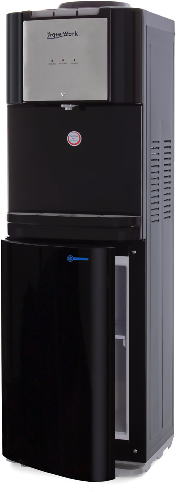 Aqua Work 84-B функциональный напольный кулер с компрессорным охлаждением и встроенным холодильником!Практичное решение для дома или офиса, сочетающее в себе все необходимые функции для комфортного использования. Этот кулер не только обеспечивает Вас водой нужной температуры, но и предлагает дополнительное пространство для хранения продуктов благодаря встроенному холодильнику объемом 16 литров.💧 Основные преимущества Aqua Work 84-B:1️⃣ Мощная система нагрева:Нагревательная мощность 420 Вт позволяет получить до 5 литров горячей воды (90-95C) за час, идеально подходящей для приготовления чая, кофе или других горячих напитков.2️⃣ Эффективное компрессорное охлаждение:Гарантирует подачу минимум 2 литров по-настоящему холодной воды (4-10C) в течение часа, сохраняя ее свежесть даже в жаркую погоду.3️⃣ Удобное управление:Три кнопки на верхней панели обеспечивают простое и интуитивное использование: горячая вода, прохладная вода (на 2-3C ниже комнатной температуры) и холодная вода.4️⃣ Защита от детей:Защита от случайного нажатия на кнопке горячей воды предотвращает риск получения ожогов, особенно важна для семей с детьми.5️⃣ Встроенный холодильник:Просторная холодильная камера объемом 16 литров в нижней части аппарата предоставляет дополнительное место для хранения напитков, закусок или других продуктов.6️⃣ Стильный дизайн:Боковые поверхности из стали дополняются возможностью установки стаканодержателей с помощью магнита или двустороннего скотча, что делает использование еще удобнее.7️⃣ Надежность:Гарантия 2 года со дня продажи через сайт или магазины Аква Маркета говорит о высоком качестве и долговечности устройства.🌍 Aqua Work 84-B отличный выбор для комфортного потребления воды и организации пространства!Хотите всегда иметь под рукой чистую воду нужной температуры и место для хранения продуктов? Кулер Aqua Work 84-B объединяет все необходимые функции в одном устройстве, делая быт проще и удобнее.