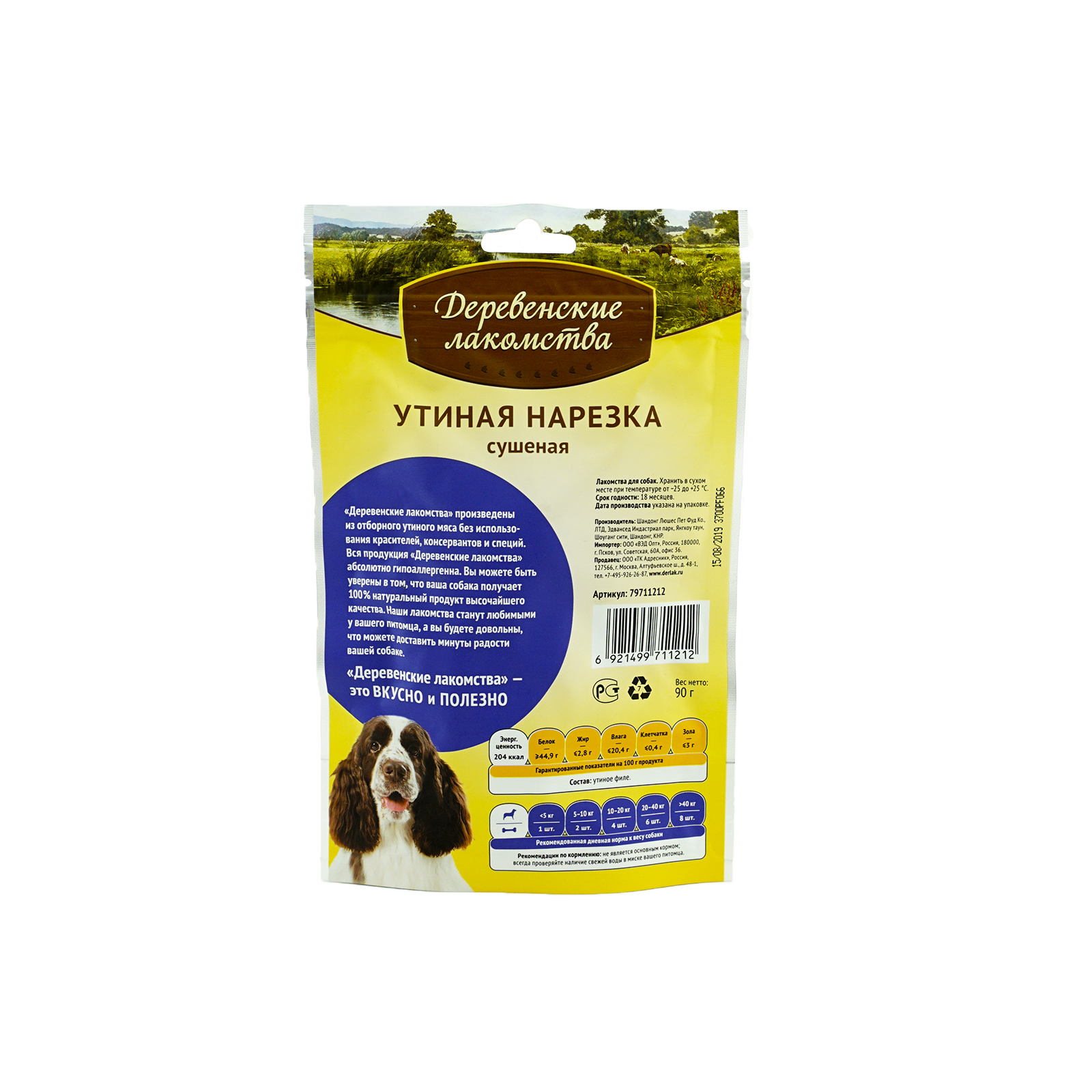Лакомство Деревенские лакомства для собак Утиная нарезка сушеная