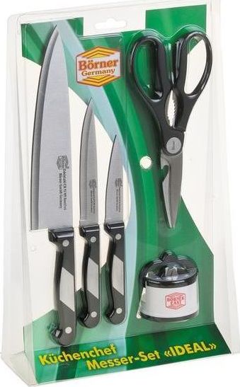 Ножи изготовлены из прокатной коррозионностойкой высоколегированной стали. Твердость стали 56+/-2 HRC. Ручки ножей из бакелита. Для заточки ножей можно использовать мусат, электроточилку, ножеточку, оселок, точильный камень.