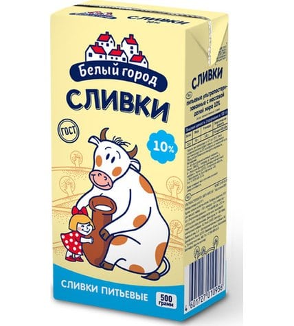Сливки Белый город ультрапастеризованные 10 % 500 мл