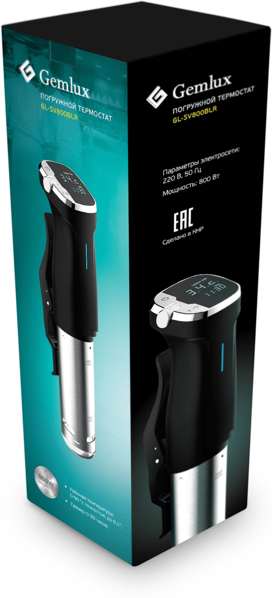 Погружной термостат Gemlux GL-SV800BLR предназначен для длительного низкотемпературного приготовления пищи на водяной бане в условиях домашней кухни.